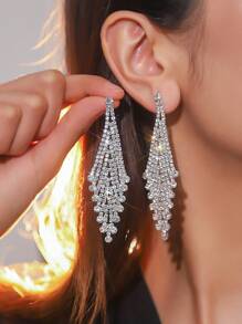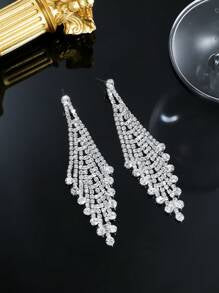 Shein - 1pair Glamorous Artificial Crystal Decor Drop Earrings