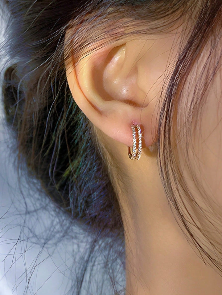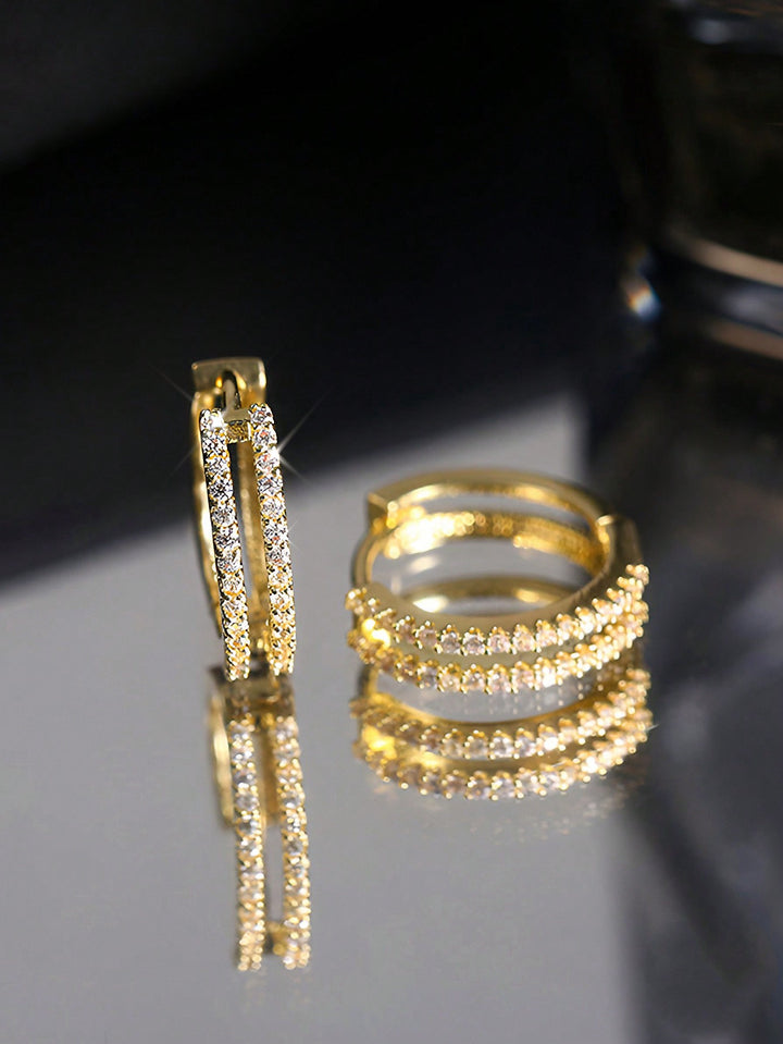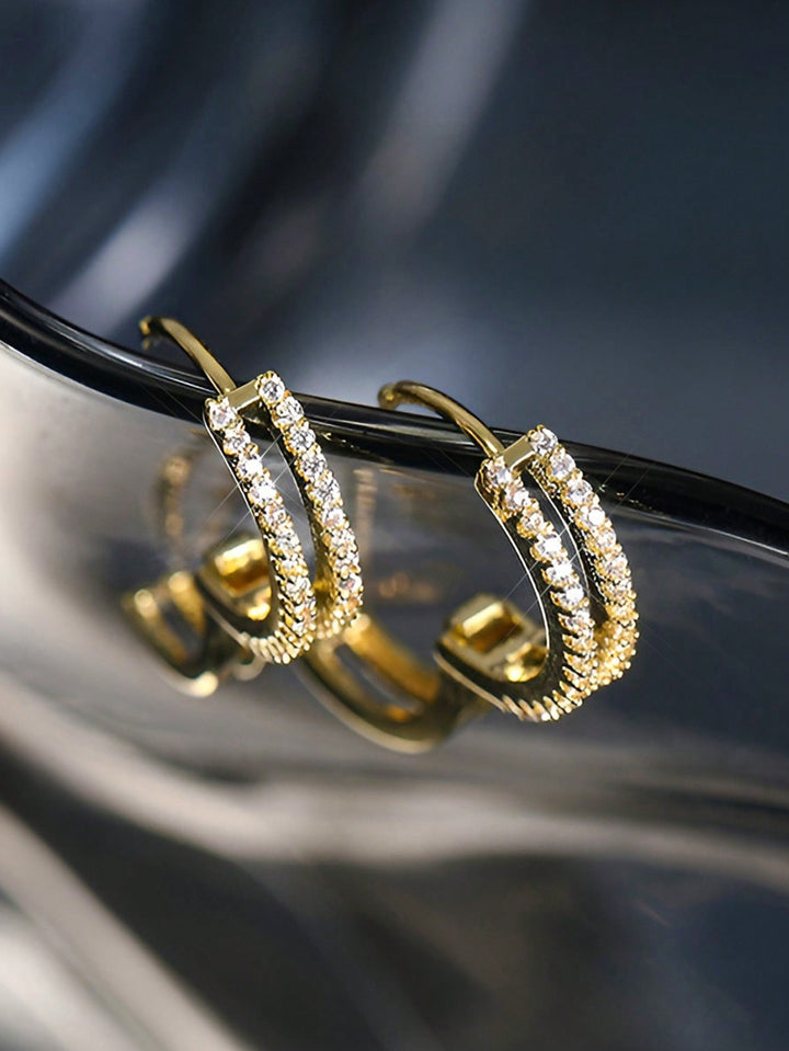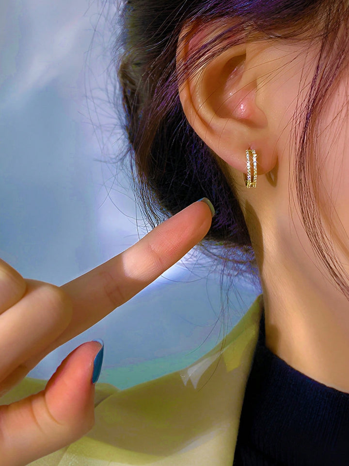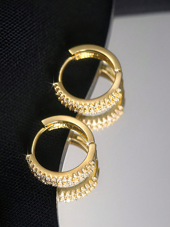Shein - 1pair Glamorous Cubic Zirconia Decor Sterling Silver Stud Earrings For Women For Banquet, Prom, Party