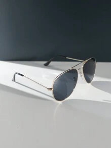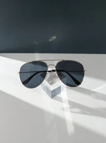 Shein - 1pair Ladies' Fashion Double Beam Metal Frame Pilot Style Sunglasses With Uv Protection
