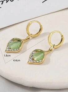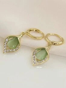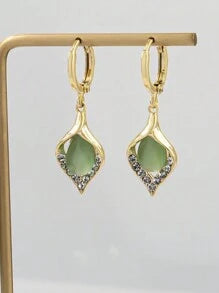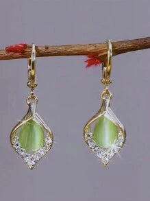 Shein - 1pair Light Luxury Elegant Green Opal Women's Earrings Dating Banquet Party Gift