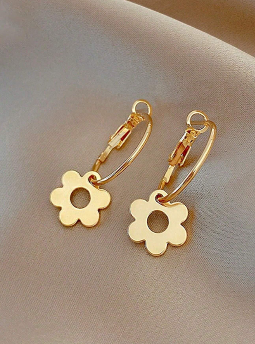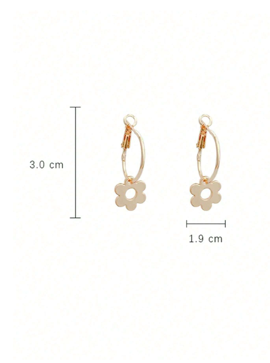 Shein - 1pair Minimalist Flower Design Round Hoop Earrings, Elegant Metal Earring Accessories