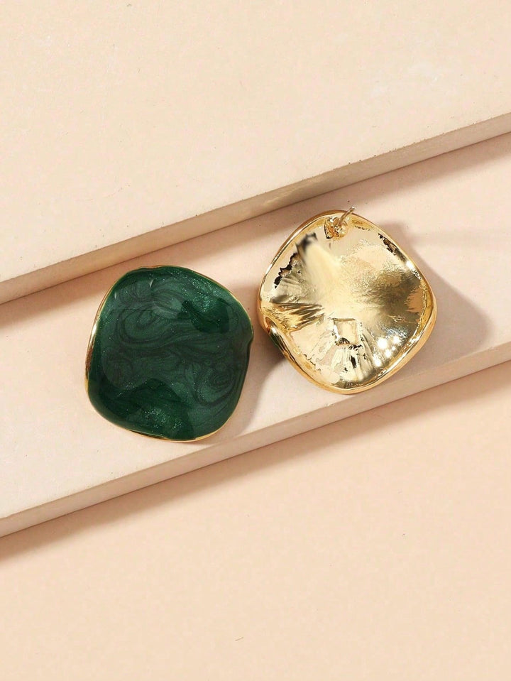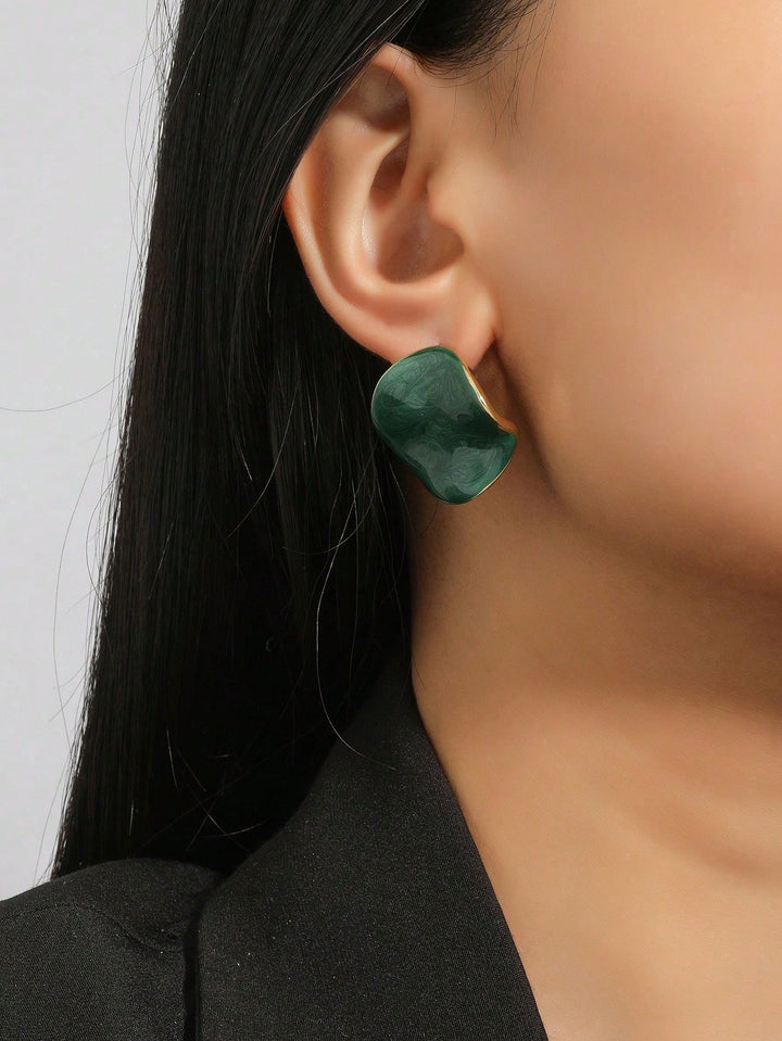 Shein - 1pair New Arrival Fashionable Simple Irregular Oil Drop Stud Earrings, Women's All-Match Accessories