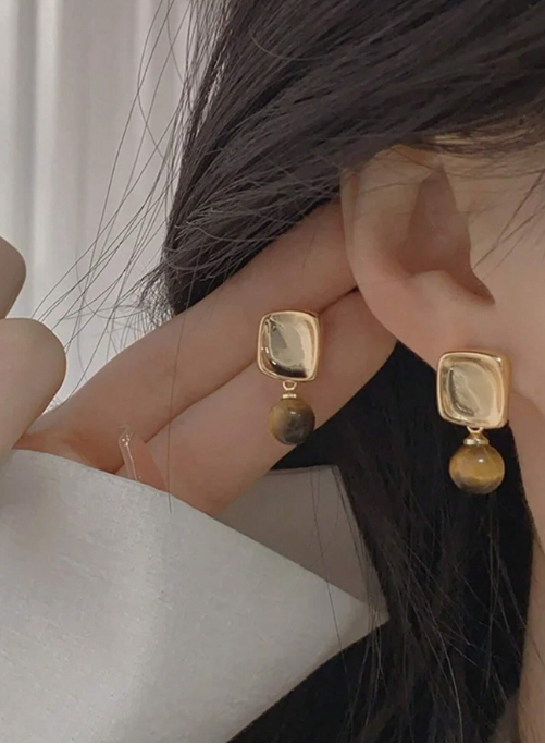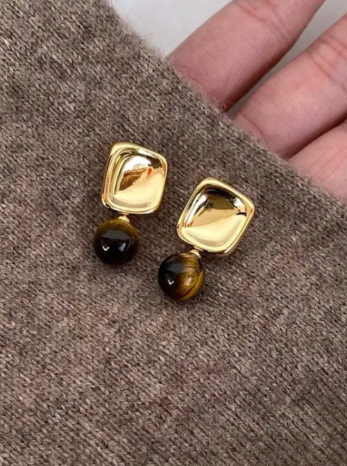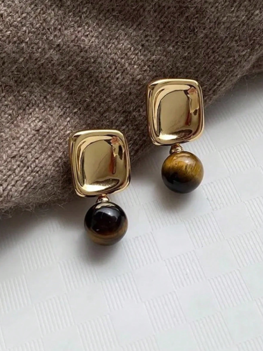 Shein - 1pair Retro Autumn And Winter Maillard Geometric Round Bead Women's Earrings