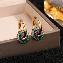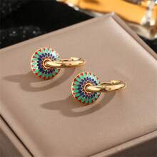 Shein - 1pair Stainless Steel 18k Plated J Chrysanthemum Flower Earrings