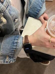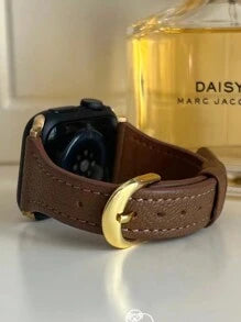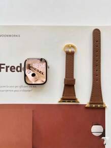 Shein - 1pc Apple Watch Band, Real Leather Watch Band For Women, Brown Simple Chic