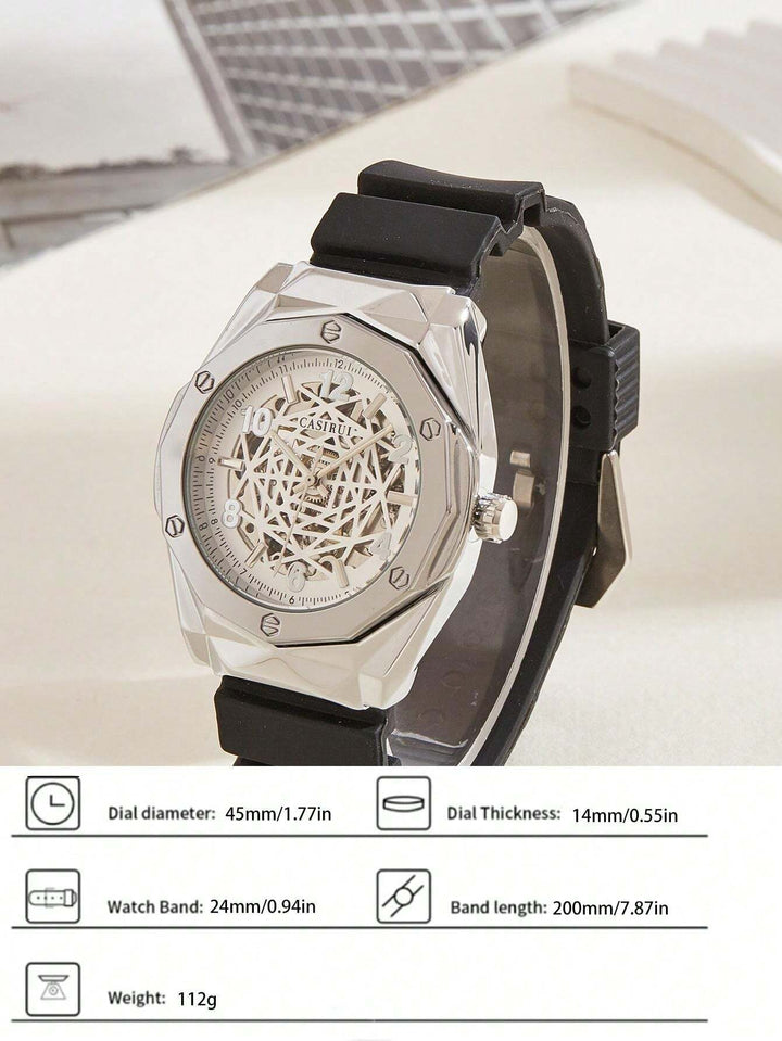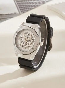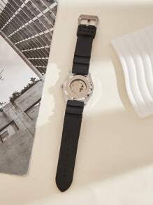 Shein - 1pc Automatic Mechanical Hollow Dial Watch, Stainless Steel Men Tourbillon Classic Fashion