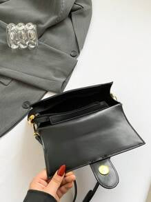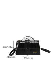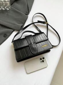 Shein - 1pc Black PU Leather Crocodile Pattern Motorcycle Style Shoulder Bag