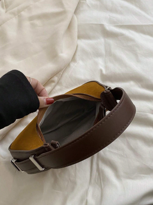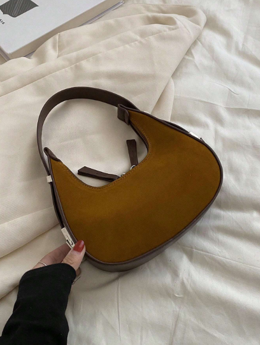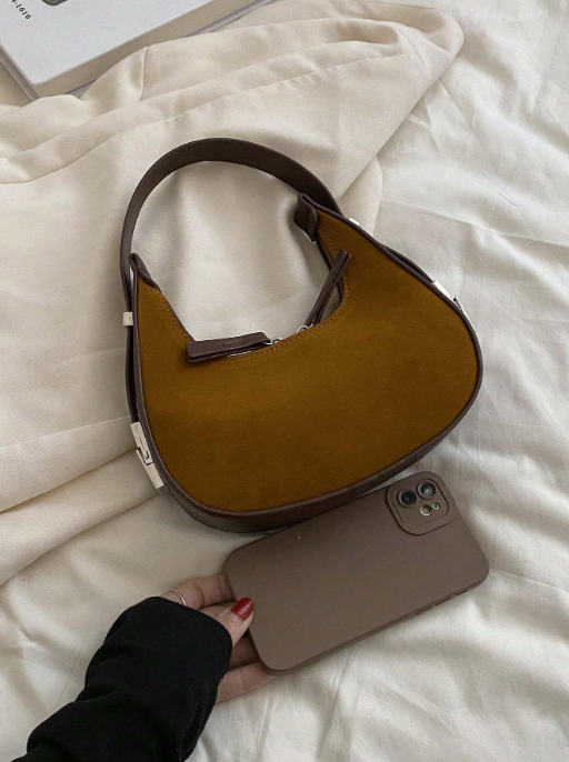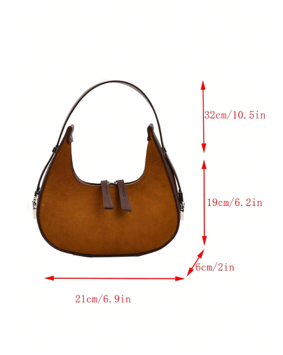 Shein - 1pc Brown Matte Finish & PU Leather Crescent Tote Bag