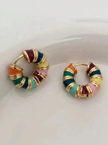 Shein - 1pc Color Block Hoop Earrings Copper Jewelry