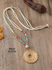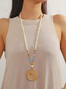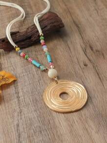 Shein - 1pc Colorful Bead & Round Pendant Necklace