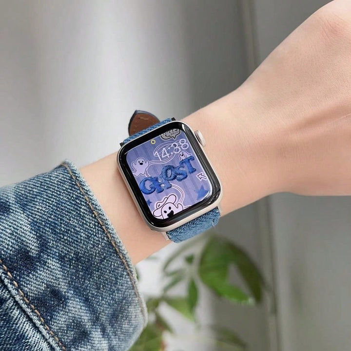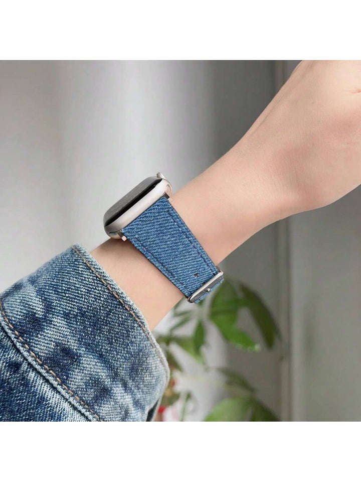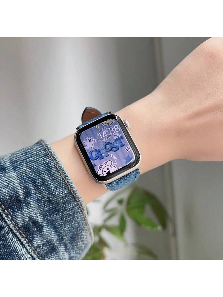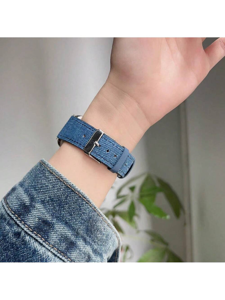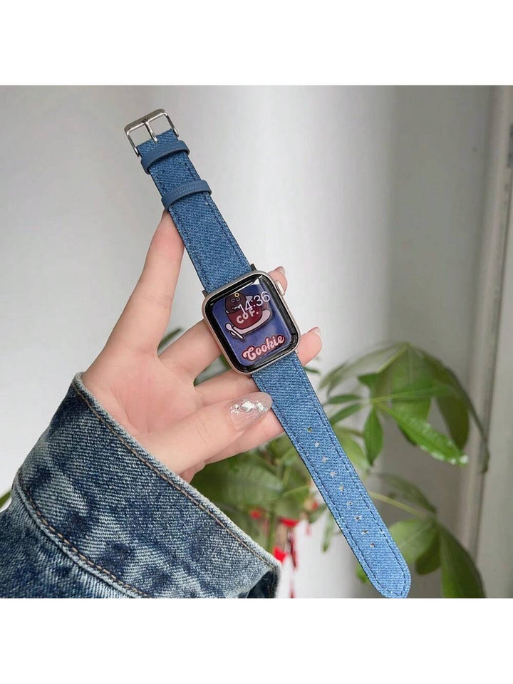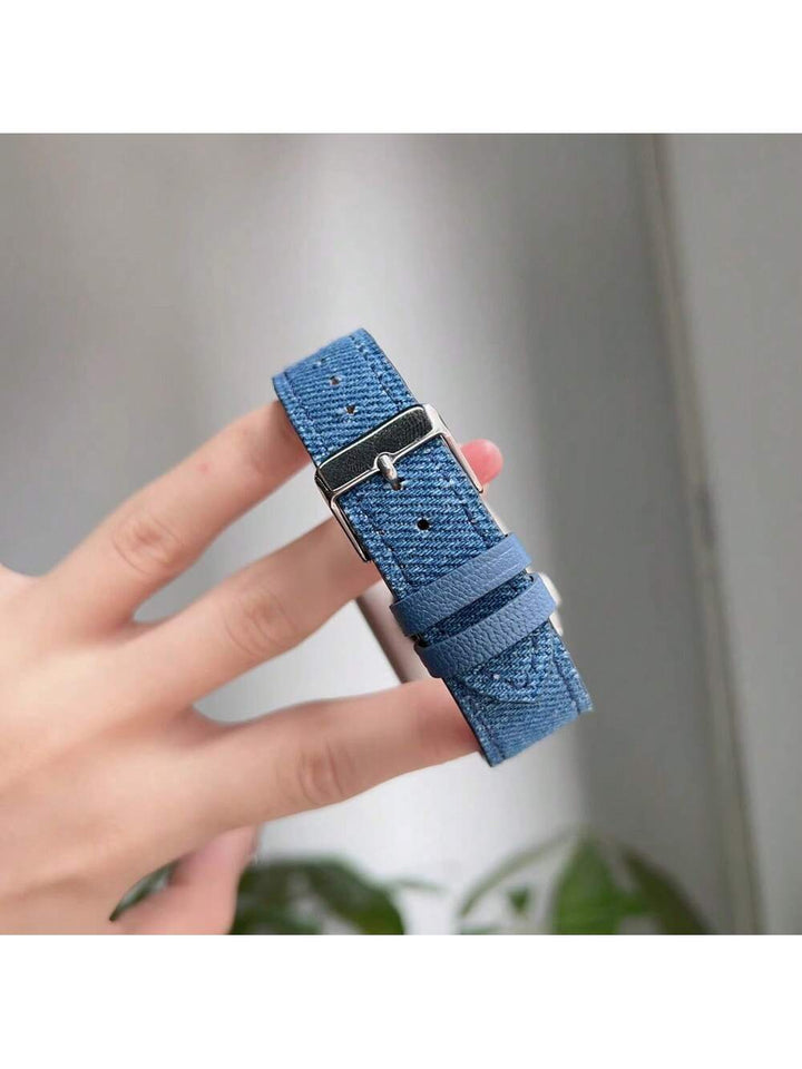 Shein - 1pc Cowhide Leather & Denim Fabric Watch Band For Apple Watch Series 9/se/6/5