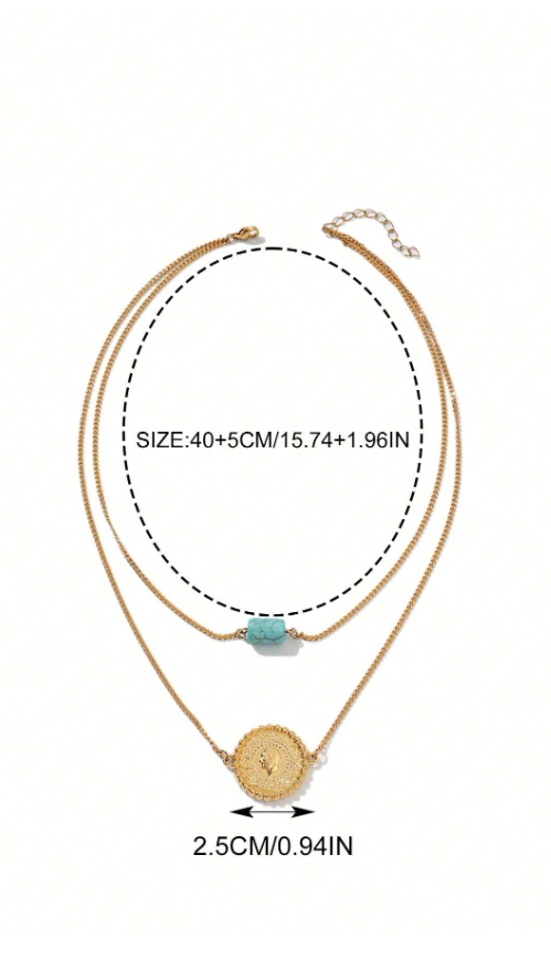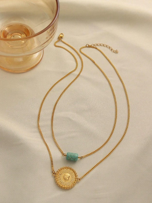 Shein - 1pc Elegant Minimalist Stainless Steel Copper Alloy Gold-Plated Coin Bead Multi-Layer Necklace