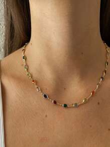 Shein - 1pc Exquisite Multi-Color Acrylic Rhinestone Inlaid Necklace