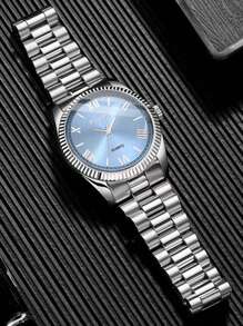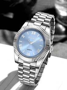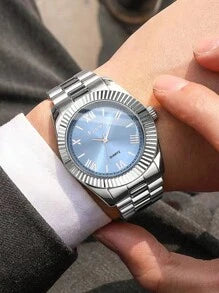 Shein - 1pc Fashion Business Leisure Round Roman Scale Men's Steel Band Quartz Watch