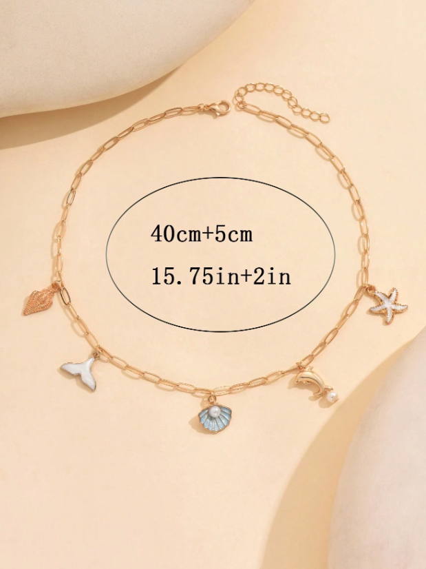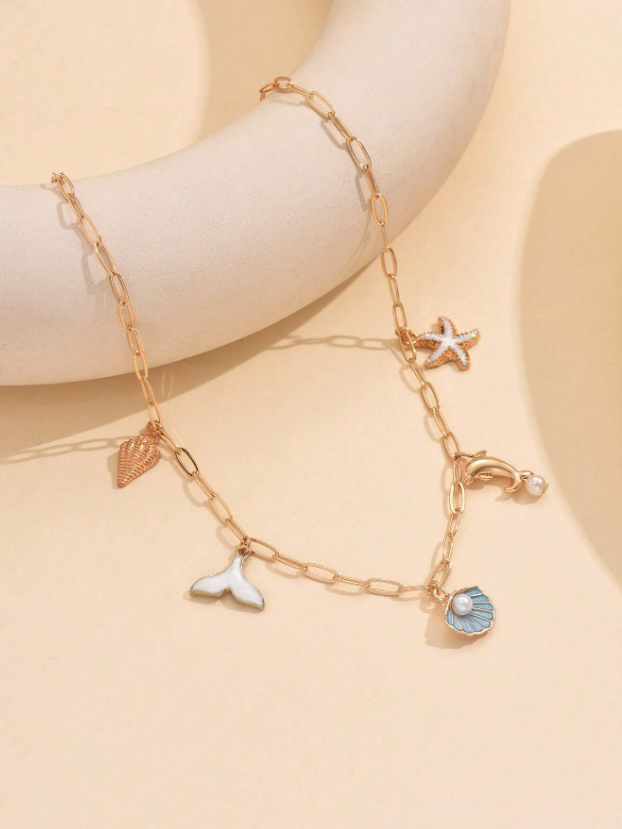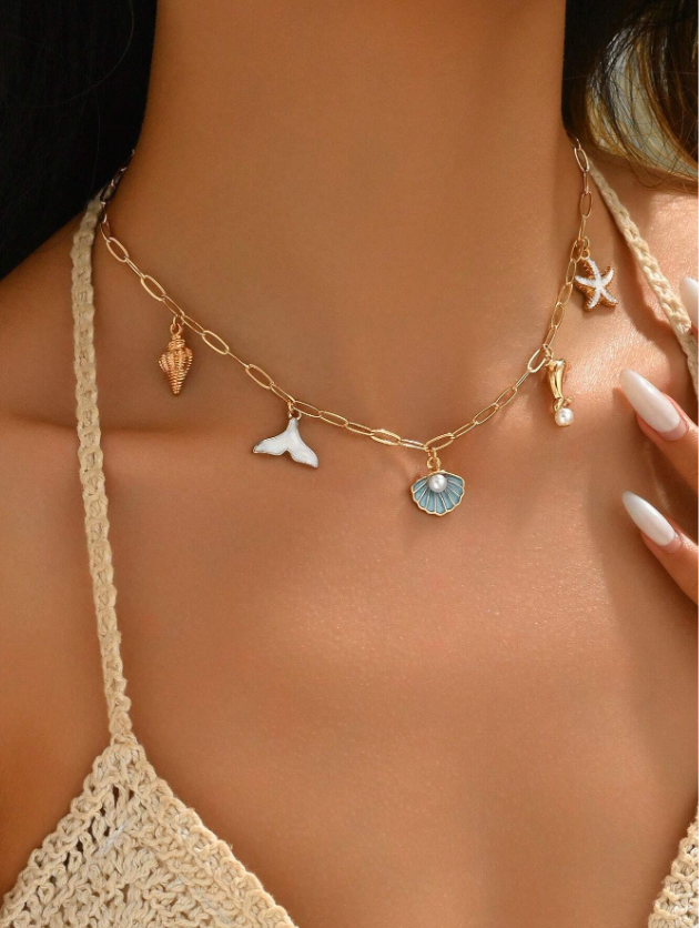 Shein - 1pc Fashion Colorful Enamel Seascape Pendant Necklace