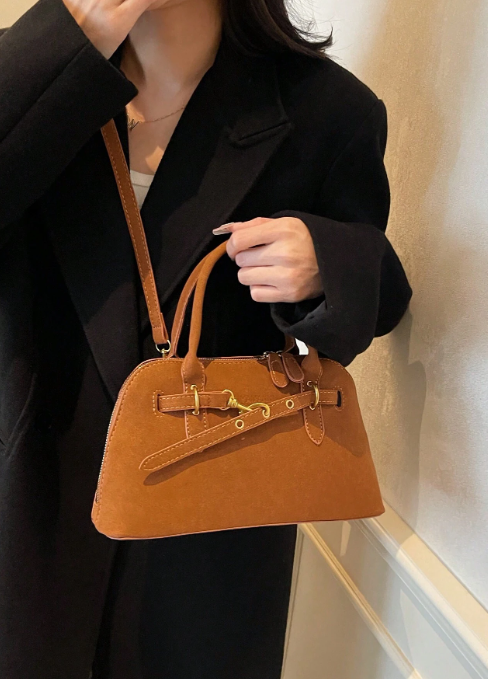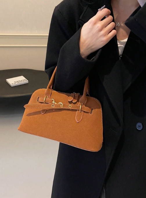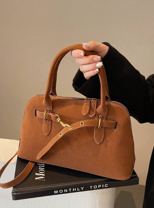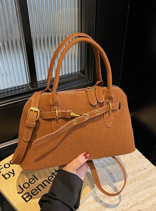 Shein - 1pc Fashionable Brown Suede Messenger Bag, Vintage Shell Design Handbag