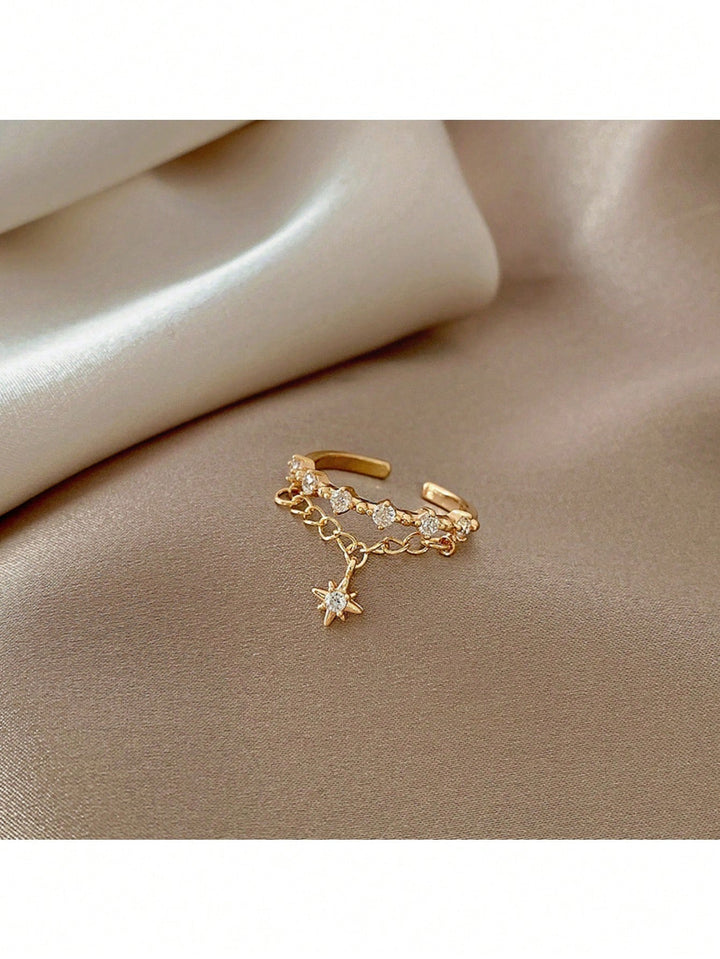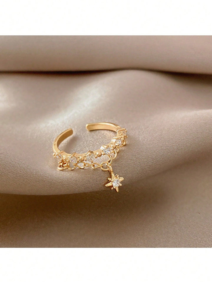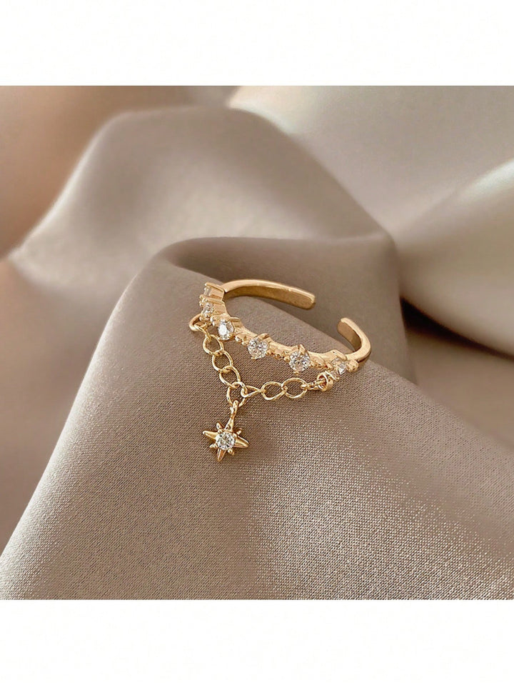 Shein - 1Pc Fashionable New Arrival European And American Style Alloy Chain Geometric Ring, Open Adjustable Ring For Women'S Accessories