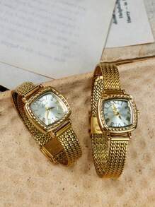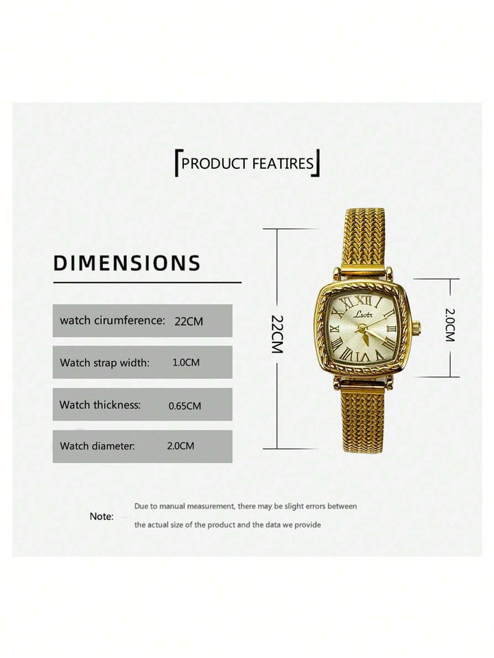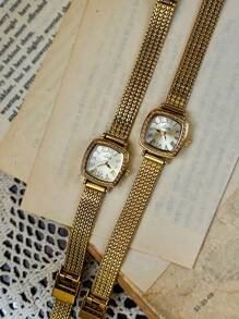Shein - 1pc French Vintage Style Gold Dial Quartz Copper Watchband Women's Wristwatch