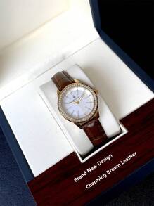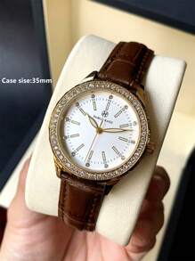 Shein - 1pc Gold Women Luxury Crystal Dress Watch