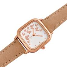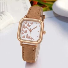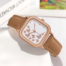 Shein - 1pc Ladies' Small Square Case Casual, Elegant, Fashionable, And Simple Butterfly Pattern Leather Quartz Wristwatc