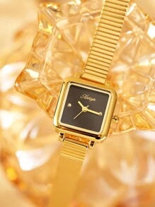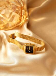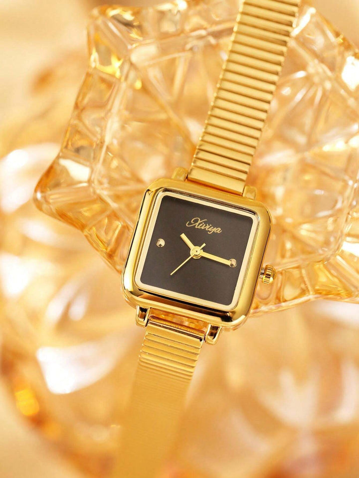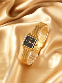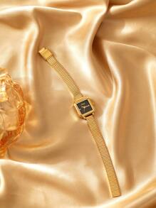 Shein - 1pc Ladies' Stainless Steel Watch Band Artistic Dial Waterproof Quartz Watch