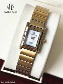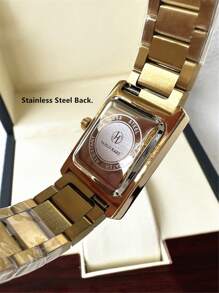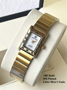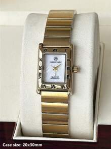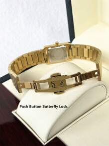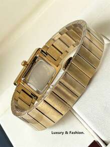 Shein - 1pc Ladies Watch 18K Gold Women Watch Luxury Rectangle Dress Watch