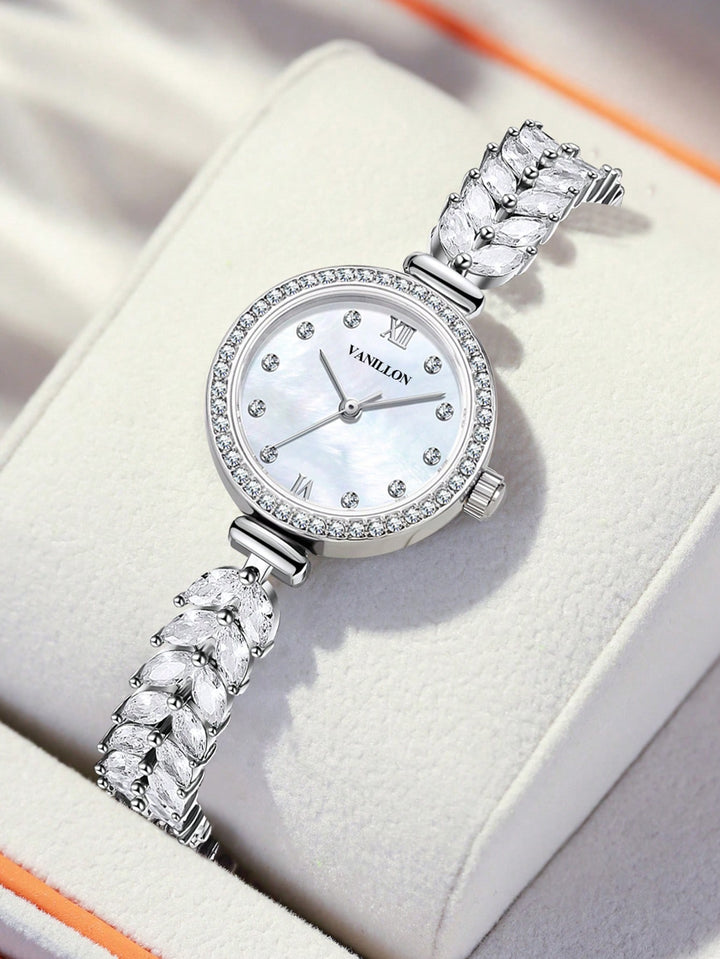 Shein - 1pc Ladies' Wristwatch With Fish Tail Strap & Starry Sky Design Dial, Full Rhinestone Quartz Watch