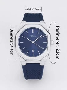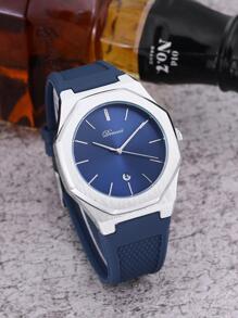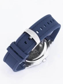 Shein - 1pc Men Navy Blue TPU Strap Casual Water Resistant Round Dial Quartz Watch