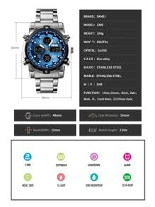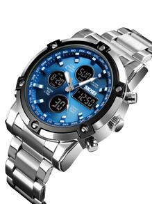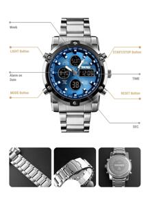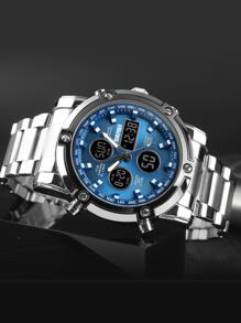 Shein - 1pc Men Silver Stainless Steel Strap Fashionable Water Resistant Round Dial Digital Watch