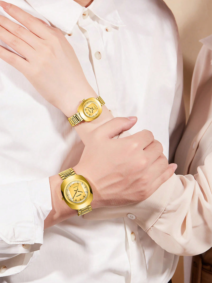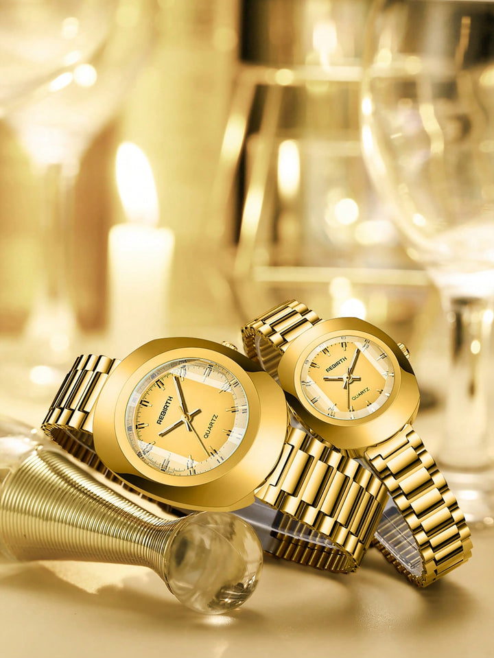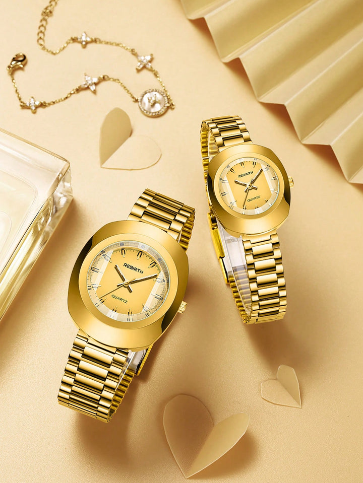 Shein - 1pc Men's And 1pc Women's Rebirth Quartz Wristwatch, Vintage Style, Couple Watch