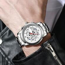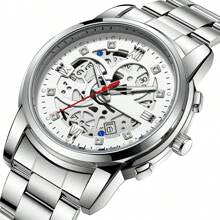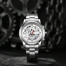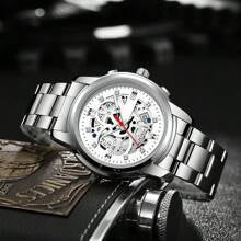 Shein - 1pc Men's Fashion Business Stainless Steel Strap Quartz Watch With Water Diamonds Silver