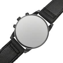 Shein - 1pc Men's Fashionable Business Style Thickened Leather Strap Quartz Watch With Bar-Shaped Indices
