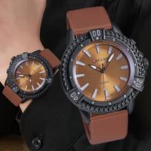 Shein - 1pc Men's Fashionable Business Sun Ray Design Thickened Silicone Strap Quartz Wristwatch