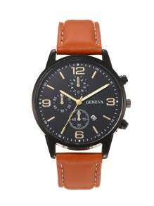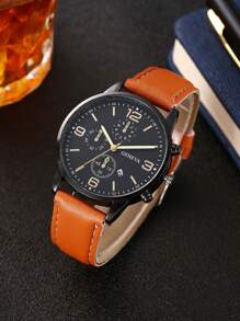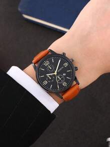 Shein - 1pc Men's Orange Mixed Scale 3-Eye Quartz Watch
