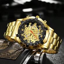 Shein - 1pc Men's Stainless Steel Strap Fashion Business Casual Sports Quartz Watch,