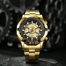 Shein - 1pc Men's Stainless Steel Strap Fashion Business Casual Sports Quartz Watch,