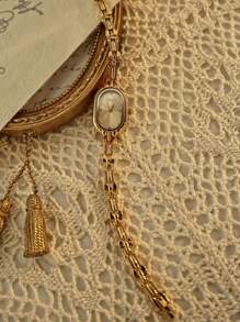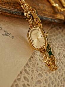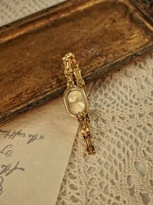 Shein - 1pc New Fashionable Women's Watch With Gold Bracelet, Vintage & Luxury Ins Style, Elegant & Versatile Quartz Watch