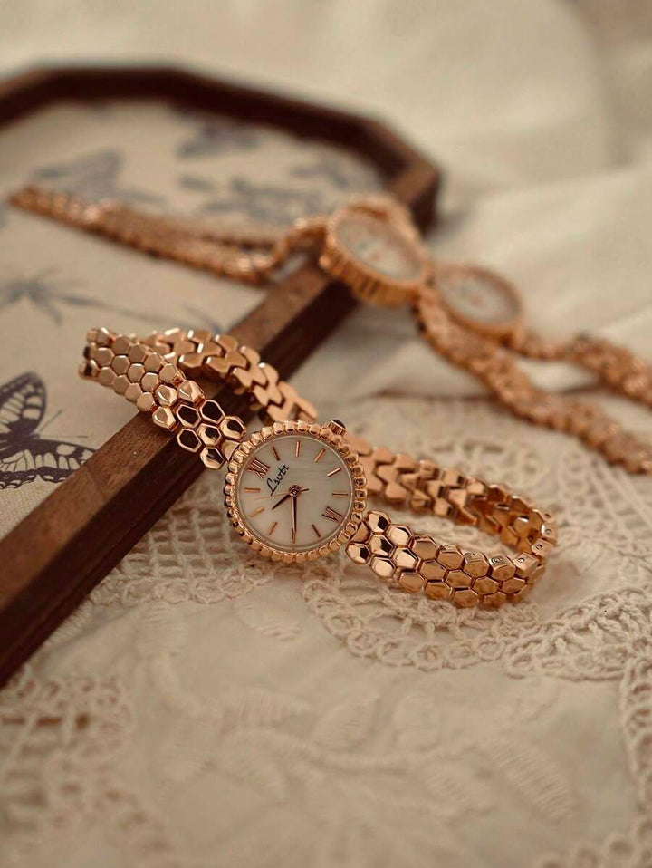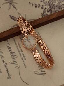 Shein - 1pc New Luxury Elegant Queen Bee Honeycomb Design Ladies Quartz Watch, Stainless Steel Strap