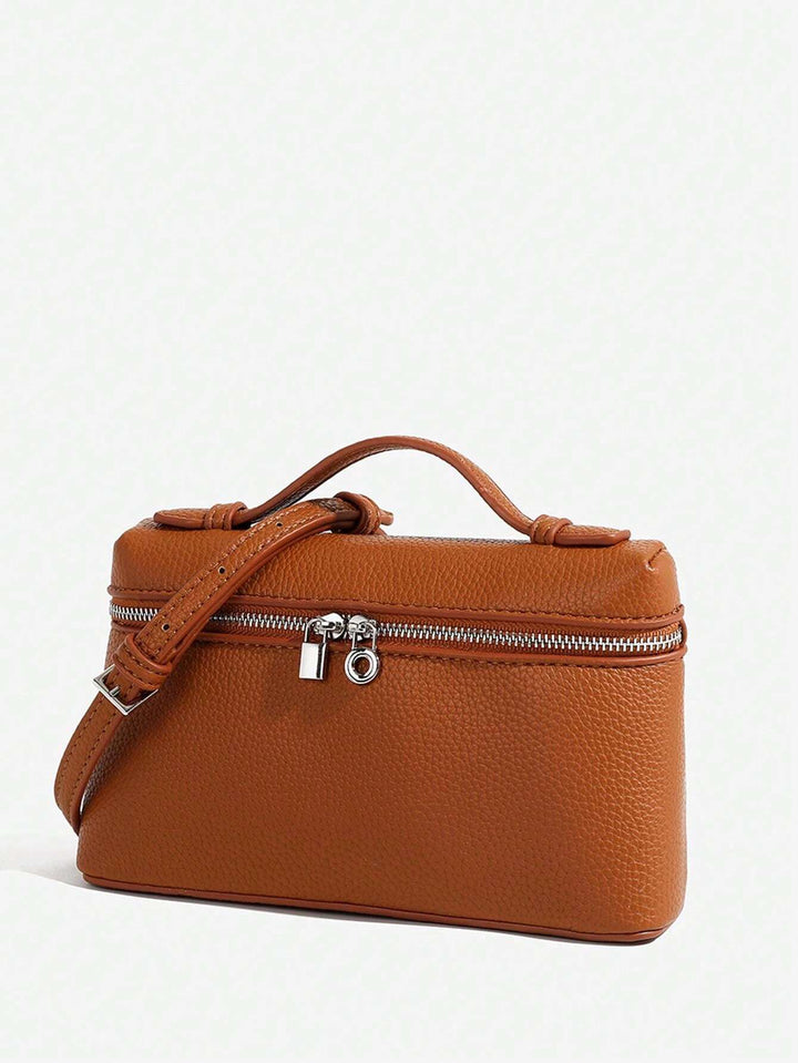 Shein - 1pc Plain Litchi Pattern PU Square Crossbody Bag For Women, Suitable For Daily Fashion Matching