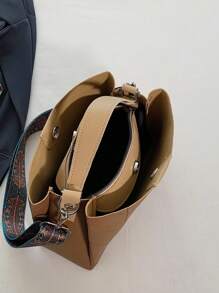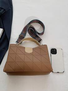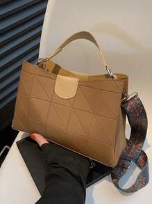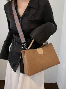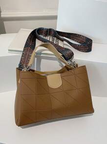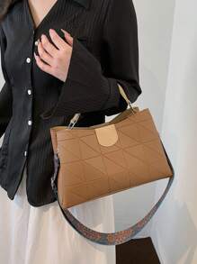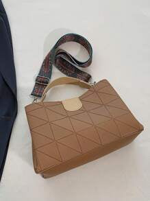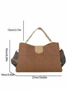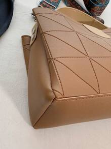 Shein - 1pc Quilted Patchwork PU Leather High Capacity Magnetic Closure Tote Bag