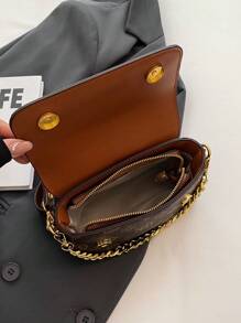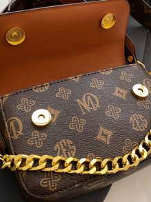 Shein - 1pc Retro Letter Printed Mini PU Underarm Bag
