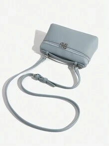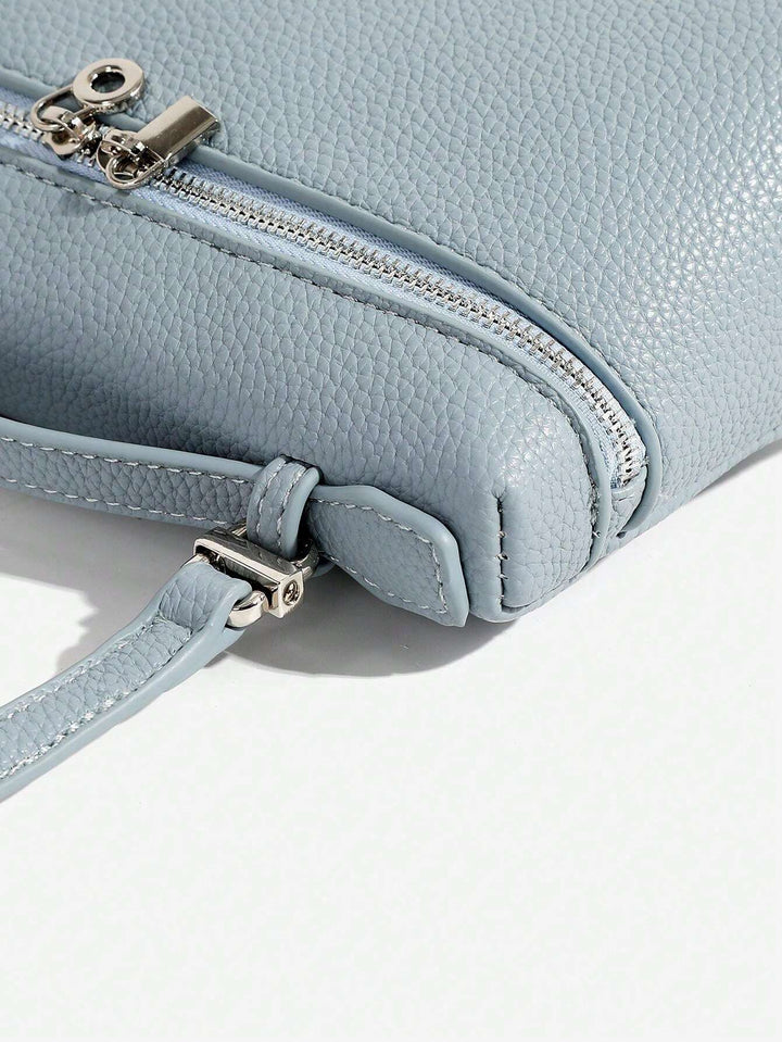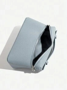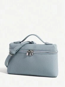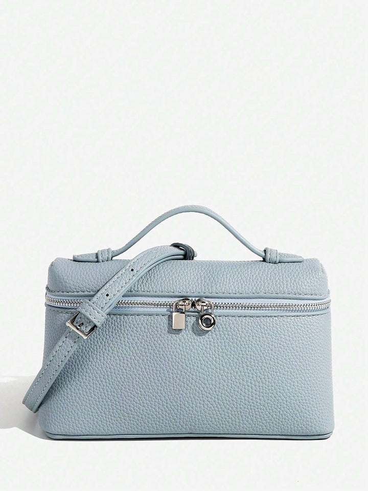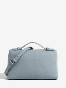Shein - 1pc Solid Color Litchi Grain PU Square Shoulder Bag Small Handbag For Women