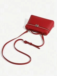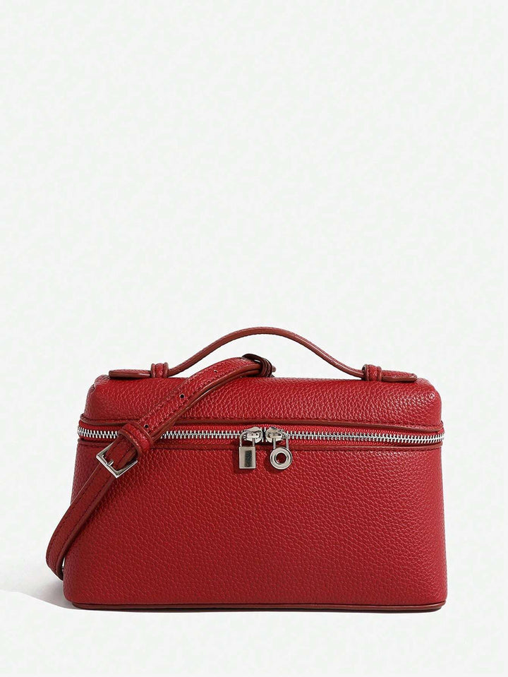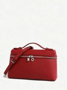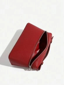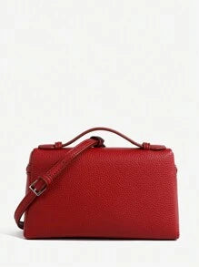 Shein - 1pc Solid Color Litchi Pattern PU Square Crossbody Bag Small Handbag