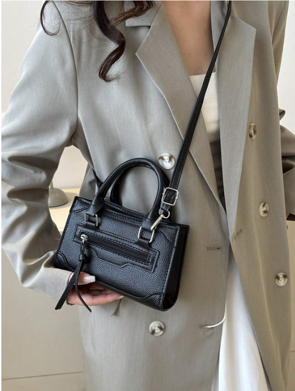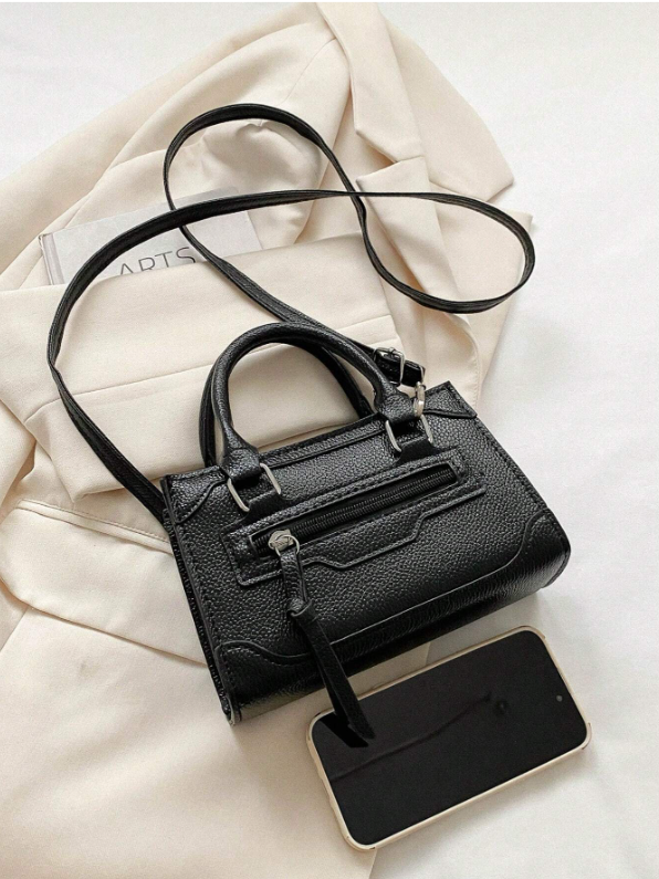 Shein - 1pc Solid Color PU Leather Zipper Closure Phone Wallet Purse, Fashion Minimalist Style Crossbody Mini Handbag