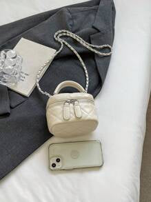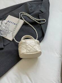 Shein - 1pc Spring/Summer Fashionable PU Mini Crossbody Bag With Diamond Shaped Quilting And Chain Strap