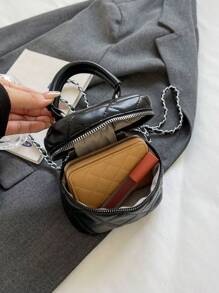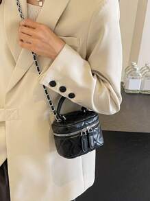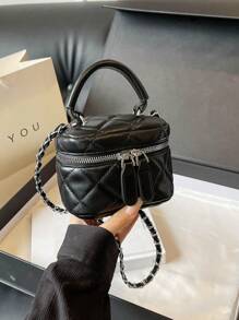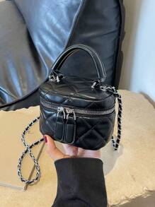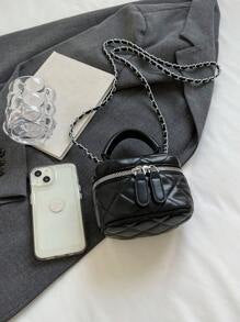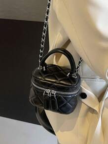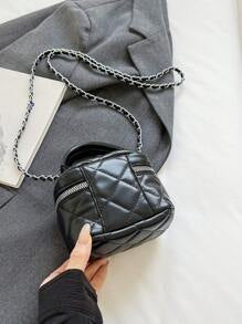 Shein - 1pc Spring Summer Mini PU Leather Crossbody Bag With Diamond Pattern And Chain