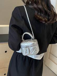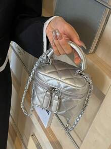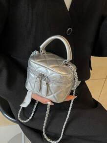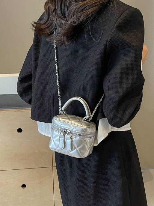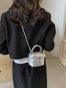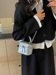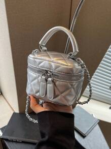 Shein - 1pc Spring/Summer Pu Leather Mini Crossbody Bag With Diamond Pattern Quilting & Chain Strap
