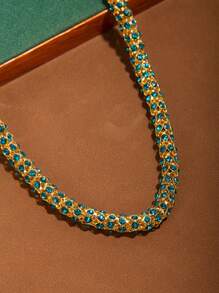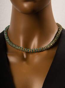 Shein - 1pc Trendy Colorful Crystal Chunky Chain Necklace