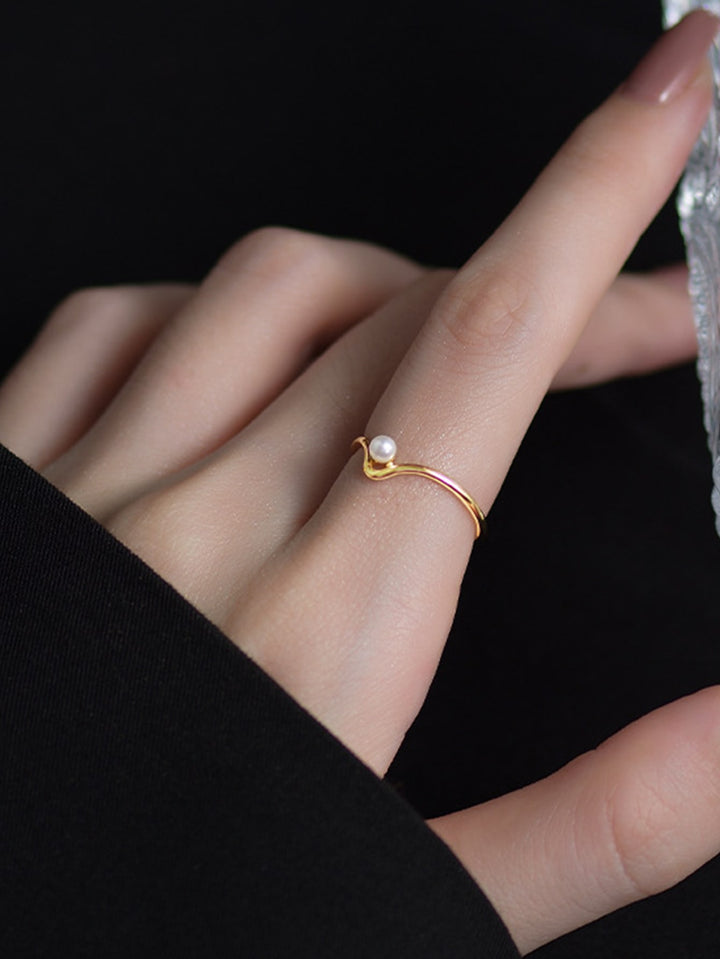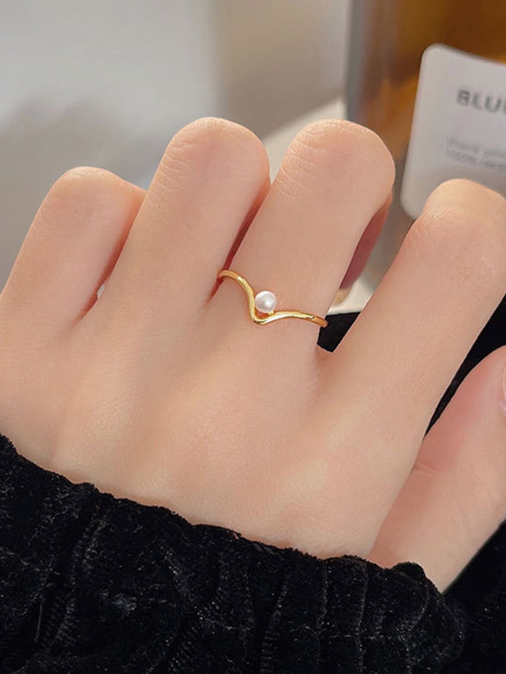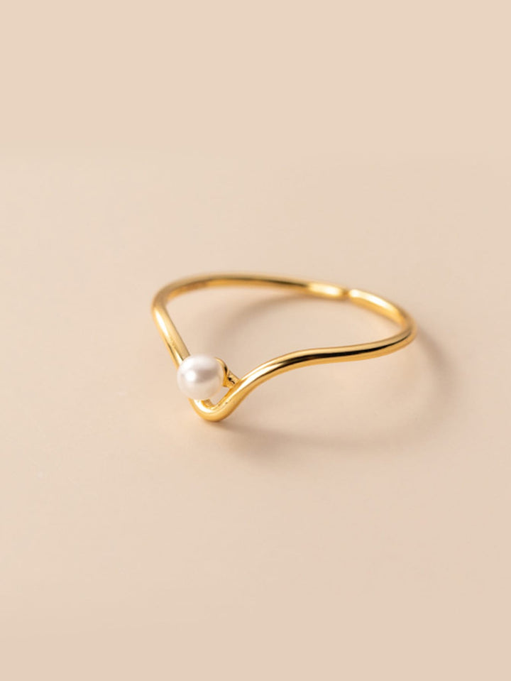 Shein - 1Pc V Shape Faux Pearl Ring, Premium Minimalist Index Finger Band