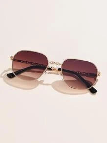 Shein - 1pc Women Metal Oval Sunglasses Suitable For Daily Wear